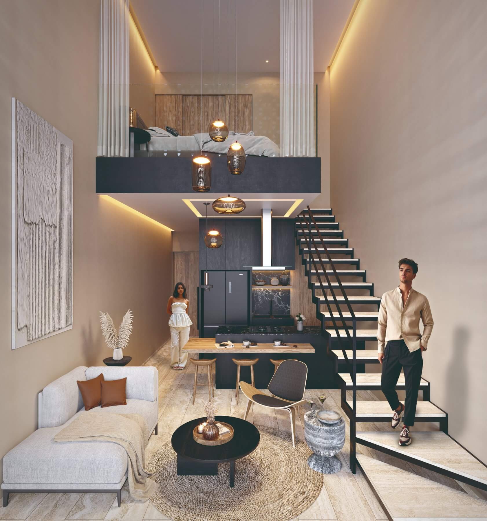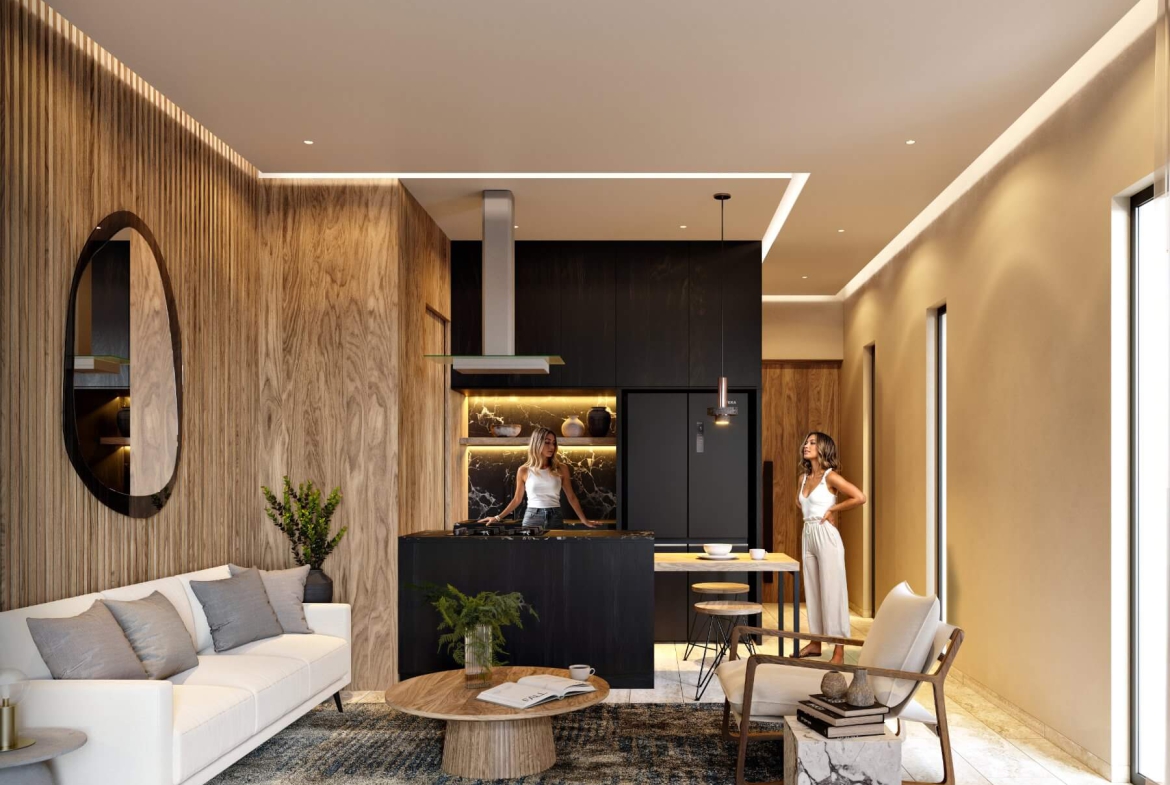 The development stands out for its premium architectural design, kitchens equipped with water-repellent materials, granite countertops, electric stoves, and hurricane shutters for greater safety and quality in each apartment.